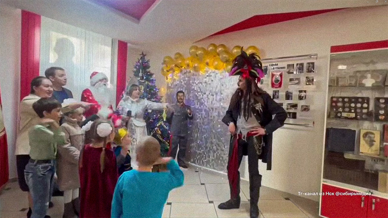 And just as in the Soviet times, the space dedicated to merriment and celebration of holidays becomes ridden with politics and attack campaigns against the enemy of the day. In the recent kids’ show set up in the “cultural-historic space” Stalin-centre this became especially apparent. Stalin-centre is a community center set up in Siberia’s Barnaul to host events, exhibitions and discussions on “of the historical heritage of the Soviet state of the leadership of the secretary of the AUCP(b)-CPSU, Generalissimo of Victory I.V. Stalin”