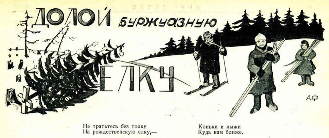 “Down with the bourgeois Christmas tree” — Soviet propaganda leaflet, 1927 / Public domain |