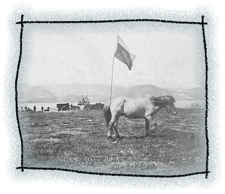 | Russian national flag at a mining encampment. St. Lawrence Bay, Chukotka, circa 1906 / Photo: Beverly Bennett Dobbs, University of Washington libraries |