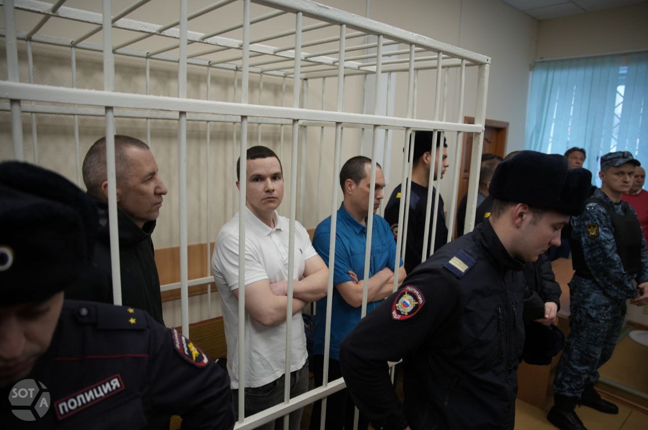 Igor Sergunin, Alexei Liptser and Vadim Kobzev at a sentencing hearing in the Petushinsky District Court of Vladimir Oblast, 17 January 2025 / Photo: SOTAvision
