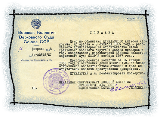 Example of a posthumous certificate of rehabilitation “due to absence of corpus delicti” issued by the Soviet authorities, 6 February 1958 / Photo: Sergei Lisitsyn, Wikimedia Commons, CC BY-SA 4.0 |
