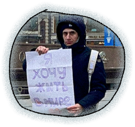 “I want to live in peace” — School teacher Kamran Ramiz Manafly holds a protest sign in front of the Kremlin, Moscow, 8 March 2022. He was detained, fired from his school and forced to leave Russia / Photo: courtesy of Kamran Ramiz Manafly |