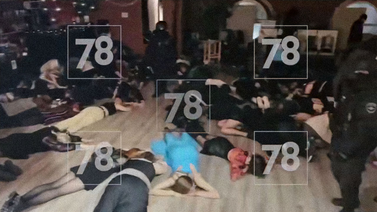 Police raid at a private LGBTQ+ party at the “Yavleniye” space in St. Petersburg, 7 December 2024. Police detained 19 people and confiscated queer literature / Screenshot: 78 news channel |