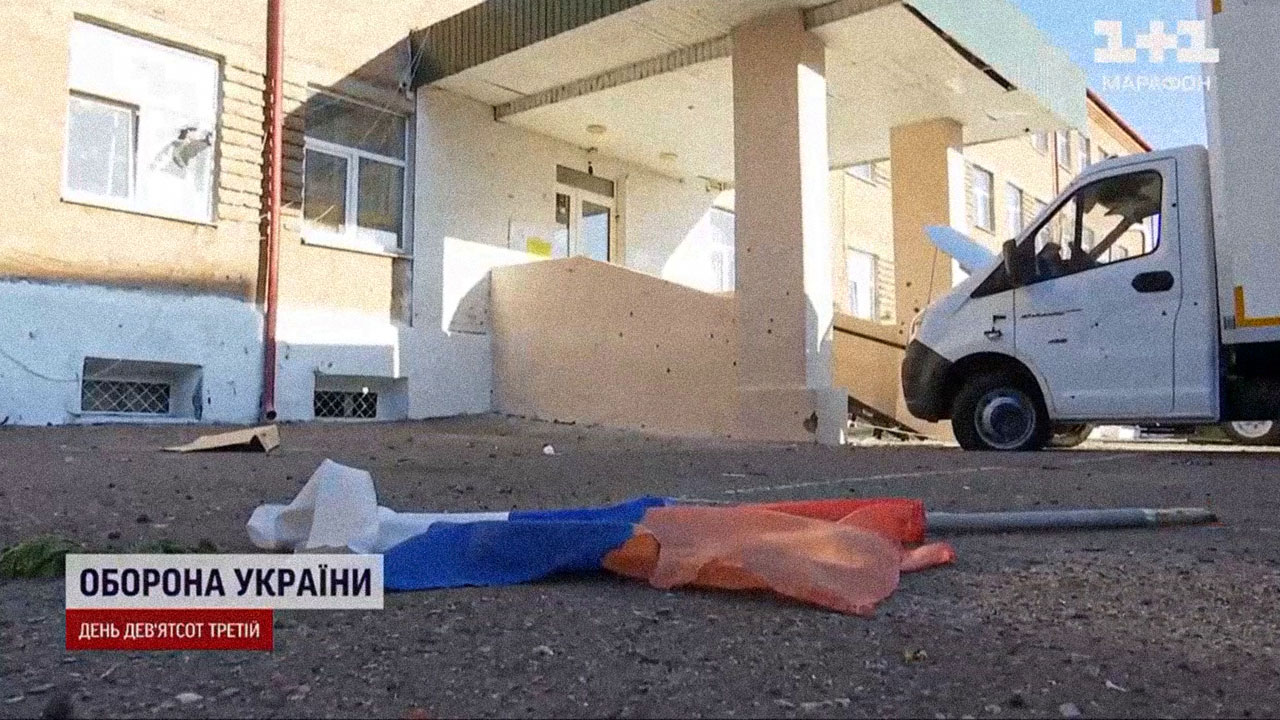 A Russian flag removed by Ukrainian soldiers at a school in Sudzha, Kursk region. 14 August 2024 / Screenshot: TSN video |