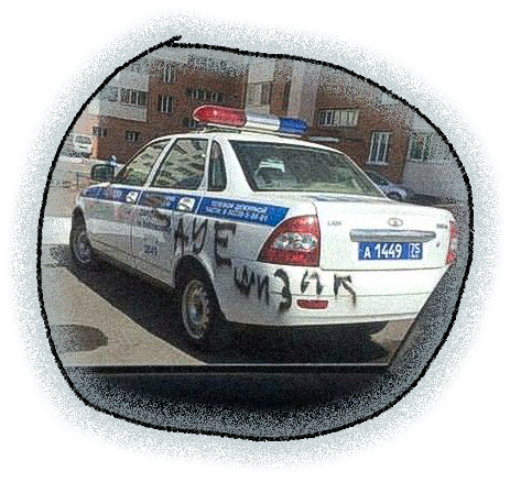 “AUE Schizo” — a vandalized police car in Chita, administrative center of Zabaykalsky Krai, which is considered the “AUE capital” of Russia, 2018 / Photo: Social media |