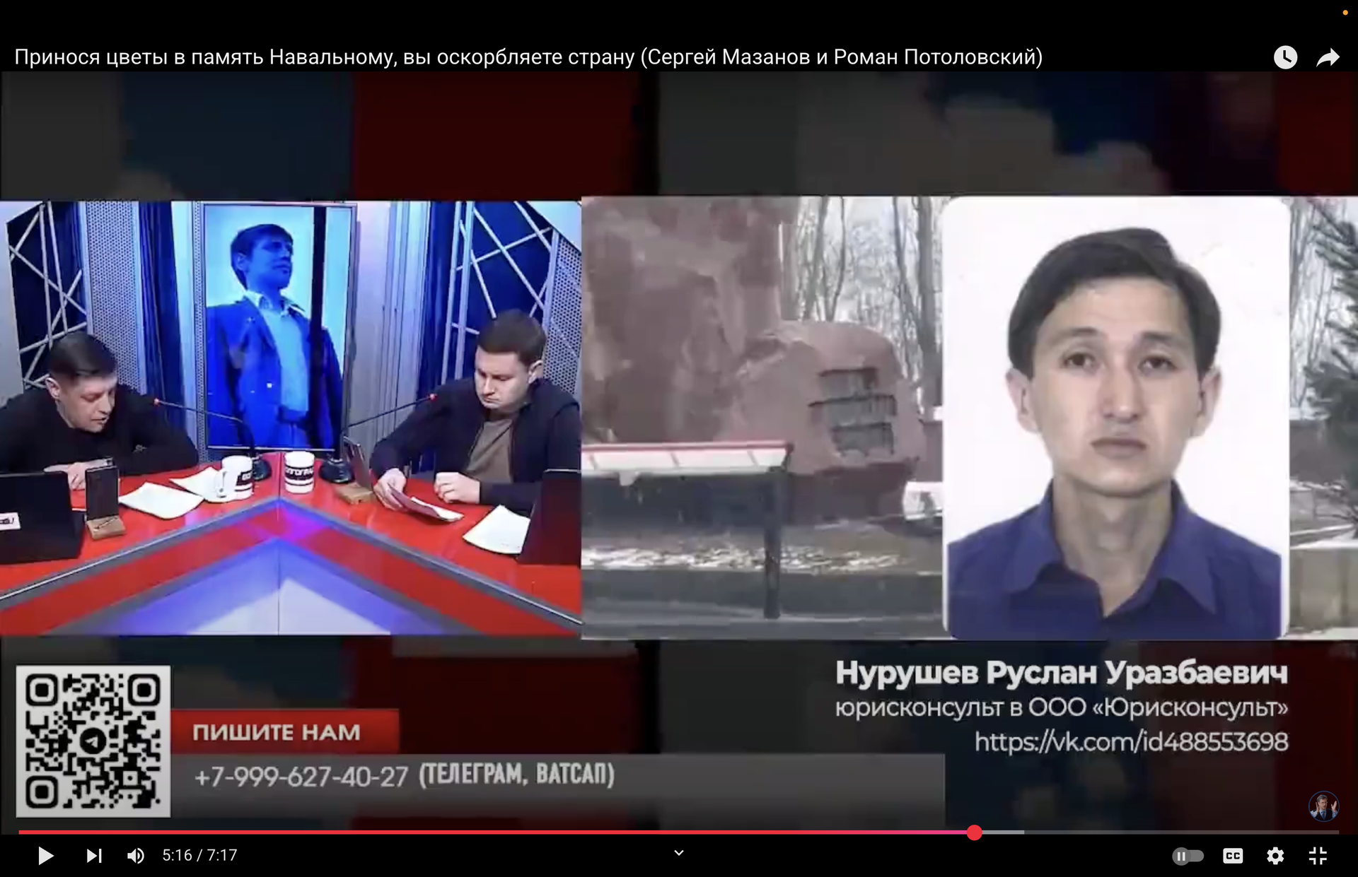 A month later, the pro-government TV channel “Volgograd 1”, on which Mazanov had appeared as a presenter for the previous few years, published the personal data and places of work of Nurushev and other city residents who came to the monument on those days.