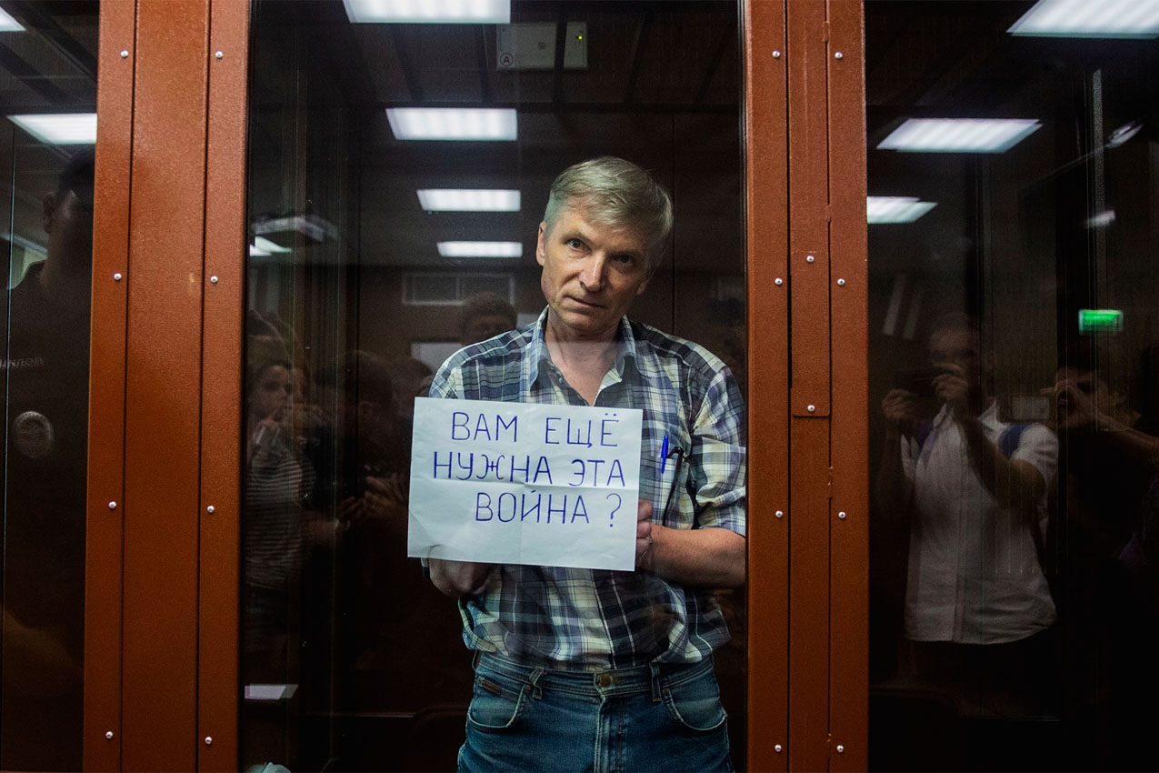 Or, consider Alexei Gorinov — one of the first to be jailed for anti-war resistance. He is a local politician, who spoke out against the war during a meeting of the local legislature. He has been in jail for two years now, sentenced to nearly 7 years for saying that the key goal of civil society must be “stopping the war, pulling out the military, stopping the aggression.” You can read our interview with him here.